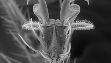 Nycteribiidae are wingless, have reduced eyes, and a spiderlike appearance. This is because their legs actually insert dorsally into the thorax.